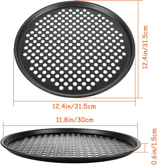 6PCS Pizza Pan with Holes 12 inch Round Pizza Pan Set Nonstick Pizza Baking Pan Carbon Steel Pizza Tray Black Pizza Crisper Pan for Home Baking Kitchen