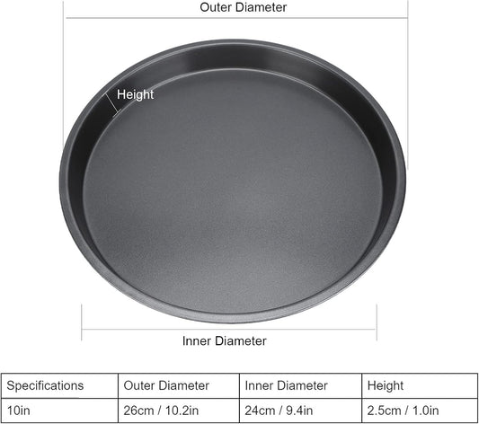 2Pcs Pizza Pan, 6in/9in/10in/12in Deep Dish Round Pizza Pan for Oven, Non Stick Thickened Carbon Steel Baking Pan for Home Kitchen, Dishwasher Safe(10in)