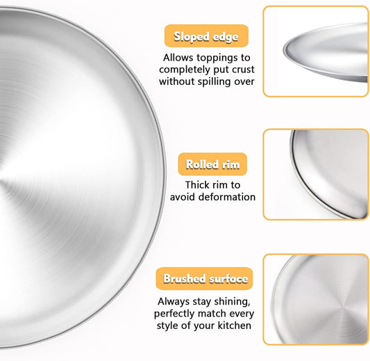 13.5 Inch Stainless Steel Pizza Pan Set of 4, Commercial Grade Restaurant Pizza Tray, Heavy Duty & Warp-Resistant for Oven, Grill & Party - Dishwasher Safe Baking Sheet