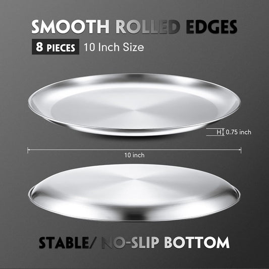 P&P CHEF 10 Inch Pizza Pan, Stainless Steel Round Pizza Tray Baking Pans, Pizzas Plate Serving Tray for Cookie Meat, Oven & Dishwasher Safe & Easy Cleaning, (Mirror Finish) - 8 Pieces