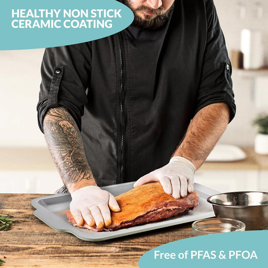 Boxiki Kitchen Non-Stick Ceramic Baking Sheet - Slick & Non-Toxic Ceramic Coating, PTFE & PFOA Free Cookie Sheet Pan - Cookie Sheet, Perfect for Baking, Roasting, and More (Half Sheet Pan)