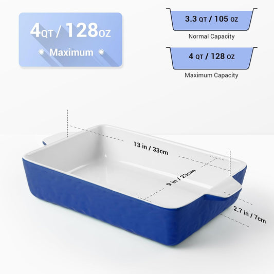 4 QT Baking Dish, Casserole Dishes for Oven, 9x13 Baking Pan with Handles, Lasagna Pan Deep, Ceramic Casserole Dish Oven Safe for Baking, Lasagna, Kitchen, Wedding Gift (Dark Blue)