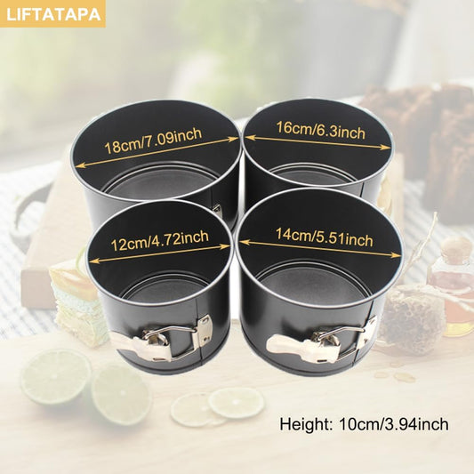 4Pcs Springform Pan (4inch, 5inch, 6inch, 7inch), Non-stick Cake Tin for Baking, Detachable Bottom Carbon Steel Cheesecake Mold Deep Dish Pans Round Cake Molds(Black)