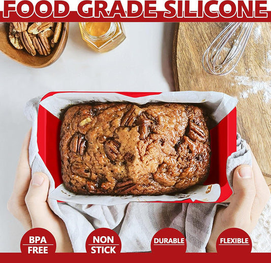 Anaeat Silicone Bread and Loaf Pans Set of 2, Non-stick loaf pans - Just PoP Out! Flexible Silicone Baking Molds for Homemade Breads, Cakes, Meatloaf, Brownies, BPA Free & Oven Safe & Dishwasher Safe