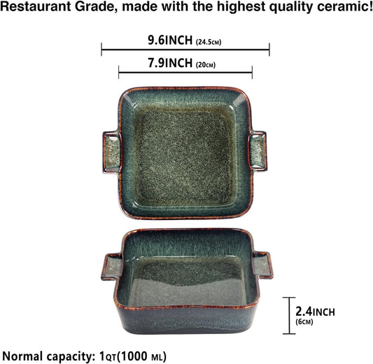 Ceramic Casserole Baking Dish, 2 Quarts Baking Dish for Oven, Lasagna Pans, Oven Safe Durable Bakeware for Kitchen Home Decor, Banquet and Dinner, Square 1 pieces, 9.5 x9.5 Inch