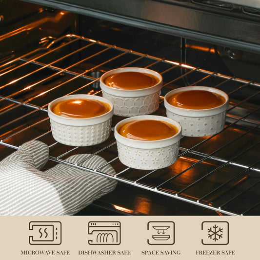 MALACASA Ramekins 4 Oz Oven Safe, Ceramic Creme Brulee Souffle Dishes, Pudding Custard Cups Ramekin For Baking, Small Dipping Sauce Bowls, Set of 4, Microwave and Dishwasher Safe, Arctic White