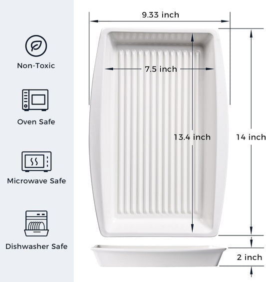 DELLING Baking Dish for Oven, 9.3'' x14'' Ceramic Casserole Dish, Lasagna Pan, Oven Safe Bakeware Sets with Handles for Baking, Roasting, White, Microwave, Dishwasher Safe, Set of 2