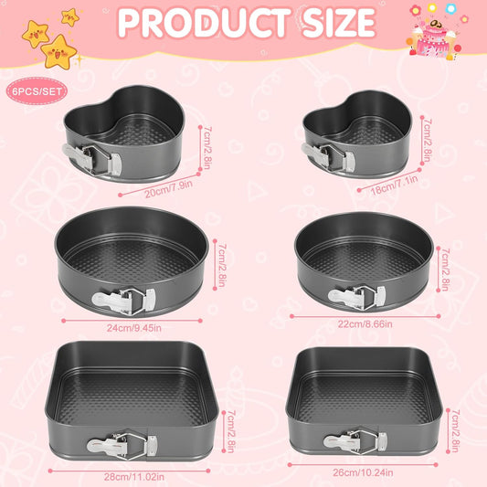 6Pcs Springform Cake Pan Set Of 7 7.8 8.6 9 10 11inch Moldes Para Pasteles Non-Stick Spring Pans Heart Cake Pan Round Nonstick Cheesecake Pans Square Spring Form Pan For Cheesecake Pizza Quiches