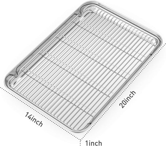 Cookie Sheet and Cooling Rack Set, 16 inch Stainless Steel Baking Pan with a Rack, Professional Bakeware, Healthy & Non-toxic & Rustproof & Easy Clean & Dishwasher Safe