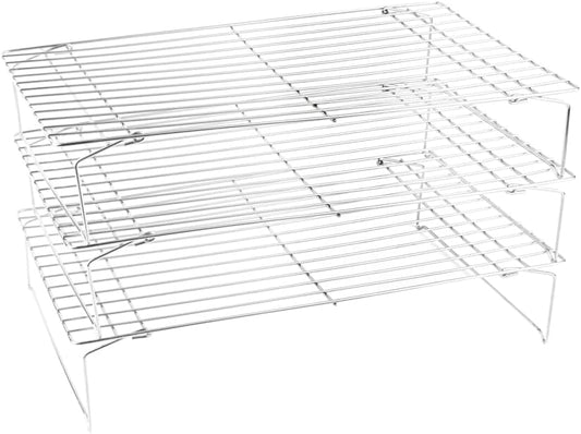 Restaurantware Met Lux 15.7 x 9.8 x 8.3 Inch Wire Baking Rack Set 1 Dishwashable Oven Wire Rack Set - 3-Tier Design Oven-Ready Up To 575F Stainless Steel Cooling Rack Set With Collapsible Feet