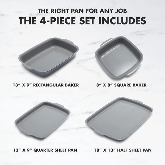 GreenPan Premiere Ovenware Healthy Ceramic Nonstick 4 Piece Bakeware Set, PFAS-Free, Rectangular, Square, Quarter, Half Sheet Baking Pans, Warp-Free, Oven Safe to 600F, Dishwasher Safe, Gray