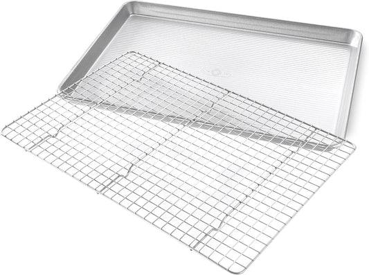 USA Pan 1607CR Bakeware Extra Large Sheet Baking Pan and Bakeable Nonstick Cooling Rack Set, XL, Metal