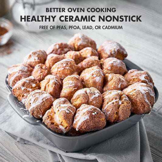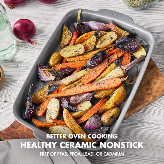 GreenPan Premiere Ovenware Healthy Ceramic Nonstick 13" x 9" Rectangular Baking Pan, Cast Aluminum Bakeware, Warp-Free, Oven and Broiler safe to 600F,Dishwasher Safe, PFAS-Free, Gray