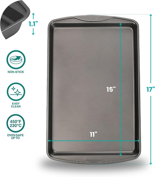 Baker's Secret Nonstick Cookie Sheets 15in baking area, Baking Trays for Oven Premium Food-Grade Coating, Non-stick Cookie Sheets, Baking Accessories - The Classic Collection (2x Medium 15" x 11")