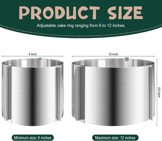 2 Pcs 6-12 Inch Adjustable Cake Mold Ring, 5.91'' High, 6 to 12'' Adjustable Cake Ring Cake Baking Supplies Baking Rings Round Stainless Steel Bakeware Tools with Scaling DIY Baking Mold Tool