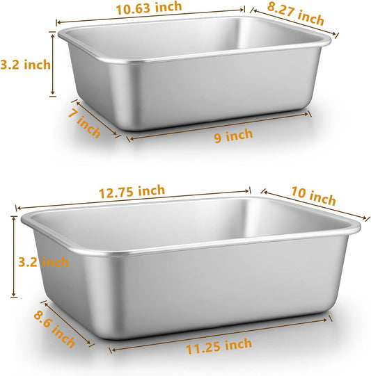 Deep Lasagna Pan Set of 2, E-far Stainless Steel Rectangular Roasting Baking Pans, 12.75 x 10 & 10.6x8.3 Inches Roaster Baking Dish, Non-Toxic & Heavy Duty, Dishwasher Safe