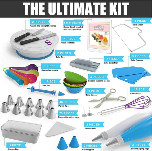 Cake Decorating Supplies Kit - Cake Turntable Set with 48 Icing Piping Tips, 20 Disposable Pastry Bags, 2 Couplers, Baking Tools for Beginners
