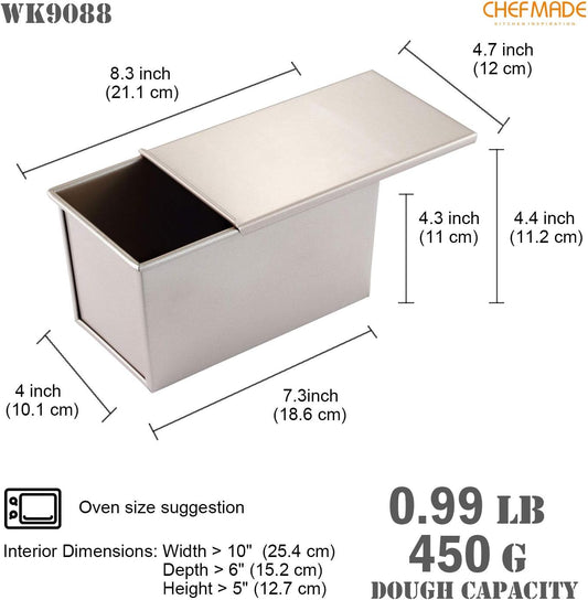CHEFMADE Pullman Loaf Pan with Lid, 1Lb Dough Capacity Non-Stick Rectangle Flat Toast Box for Oven Baking 4.2" x 7.7"x 4.4"(Champagne Gold)