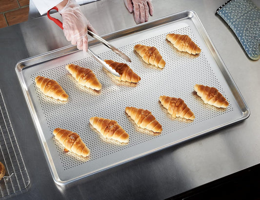 CURTA 6 Pack Aluminum Sheet Pan Perforated, NSF Listed Full Size 26 x 18 inch Commercial Bakery Cake Bun Pan, Baking Tray