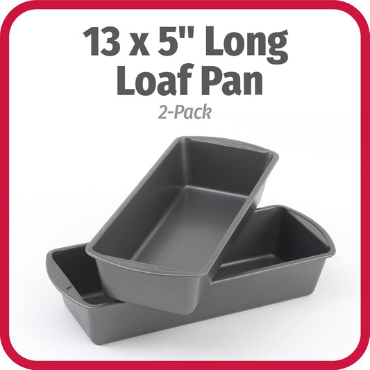 GoodCook Set of 2 Extra Large 13" x 5" Nonstick Steel Bread Loaf Pans, Gray - Set of Two Loaf Pans, Even Heat Distribution, Scratch-Resistant Nonstick Coating, Durable Construction, Easy to Clean