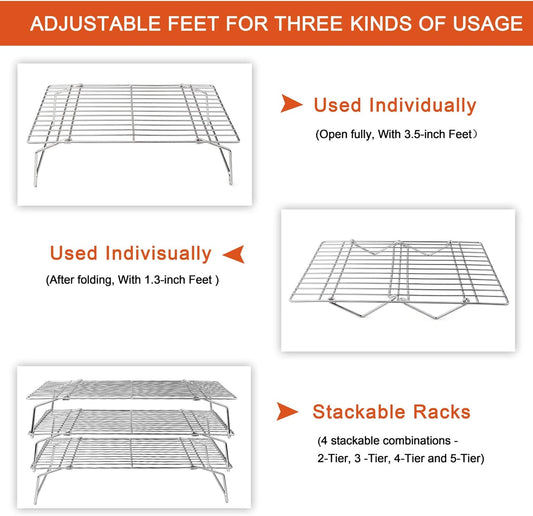 P&P CHEF Cooling Rack, 5-Tier Stainless Steel Stackable Baking Cooking Racks for Cooling Roasting Grilling, Collapsible & Heavy Duty, Oven Safe & Easy Clean, 15" x 10", Silver