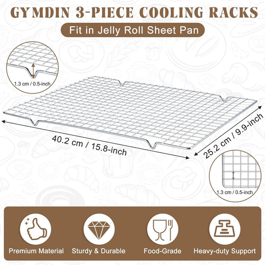 Cooling Racks for Cooking and Baking - 3PCS 16" x 10" Premium Stainless Steel Wire Cookie Cooling Rack for Baking, Roasting, and More - Oven & Dishwasher Safe - Fits Jelly Roll Pan