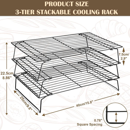 Cooling Racks - 3P Stackable Tall Baking Racks, 10 * 16 Inch Stainless Steel Wire Rack for Baking Sheet, Cooling Racks for Cooking and Baking, Oven and Dishwasher Safe
