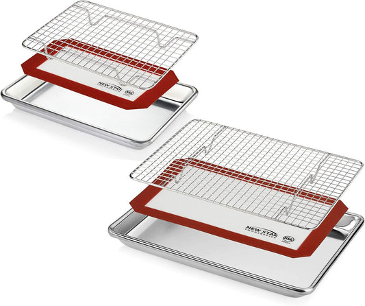 New Star Foodservice 1028751 Commercial-Grade Bun Pan/Baking Sheet, Baking Mat, Cooling Rack Combo, 1/4 and 1/2 Sizes Each