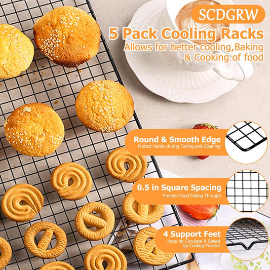 5PCS Cooling Racks for Cooking and Baking - 10" x 16" Wire Rack Baking Rack, Oven Cooking Rack, Heavy Duty Baking Rack for Grilling. Roasting, Cooking, Drying