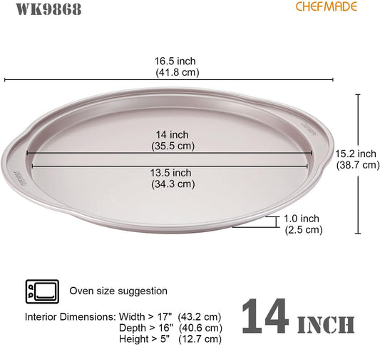 CHEFMADE Pizza pan, 14 Inch Non-Stick Pizza Tray Bakeware for Oven Baking (Champagne Gold)