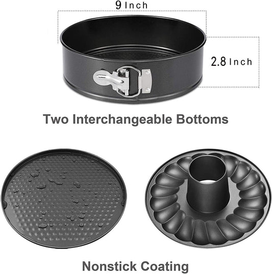 Gray 9 Inch Springform Bundt Pan, Heavy Duty Cheesecake & Ice-Cream Cake Pan with Removable Bottom and Quick-Release Latch