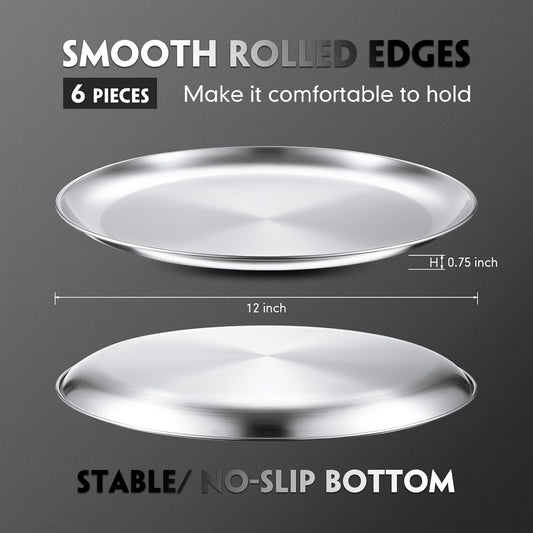 Thenshop 6 Pieces 12 Inch Pizza Pans Bulk Stainless Steel Sets Round Bakeware Pizza Trays for Oven Kitchen Baking Home Restaurant Safe Sturdy Reusable Easy Clean