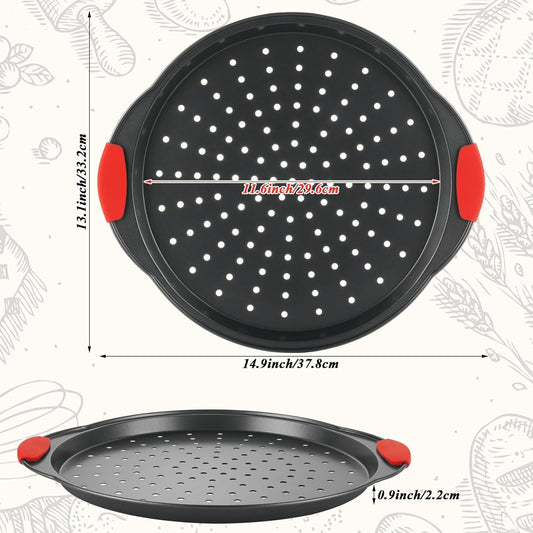 11 Inch Pizza Pan for oven, Round Nonstick Pizza Pans with Holes, Carbon Steel Pizza Baking Tray for Home Kitchen 2 Pack