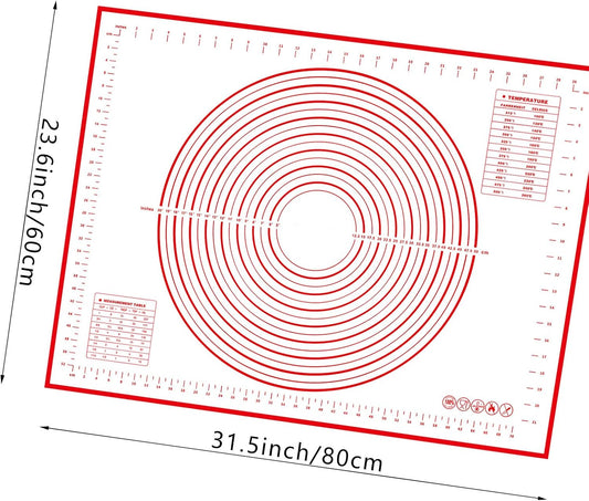 32x24" Extra Large Dough Mat Silicone Baking Mats for Rolling Pastry Kneading Sheet Sourdough Bread Baking Supplies Red