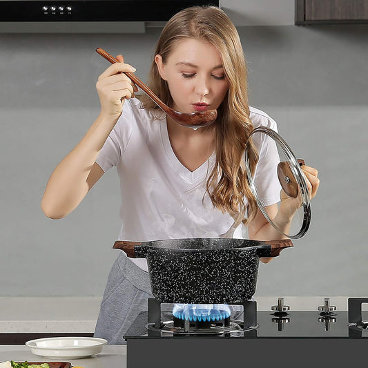 ESLITE LIFE Nonstick Stock Pot with Lid, 5 Quart Granite Casserole Large Soup Pot Pasta Cooking Pot, Induction Compatible, PTFE & PFOA Free, Black