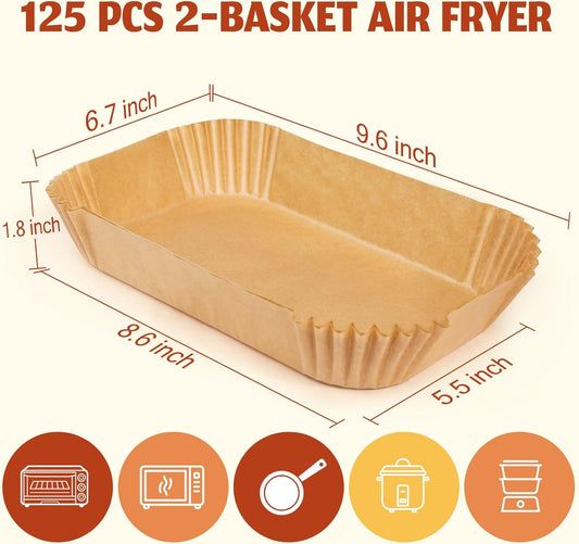 Air Fryer Liners Disposable, Airfryer Paper Liners, 125Pcs Non-stick Oil Resistant Air Fryer Liners Square, Parchment Liners 8.6" * 5.5", Fit for Most Ninja Dual Airfryer, Microwaves, Ovens