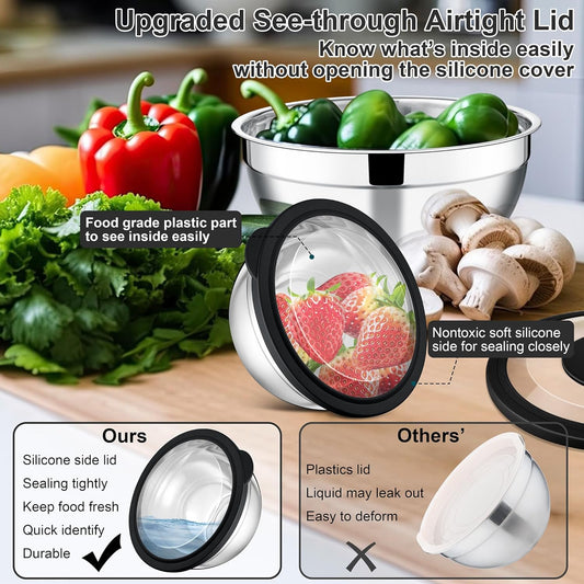Lazycorner Mixing Bowls with Airtight Lids Set 5 Pcs Stainless Steel Bowls Set Baking Set Non-Slip Silicone Bottoms Great for Serving & Baking