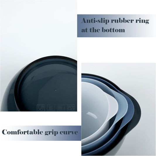 BoxedHome Nesting Plastic Mixing Bowl Set With Pour Spout, Microwave and Dishwasher Safe, BPA free Non-Slip Base, Set of 4 Size 1.7, 2.5, 3.5 and 4.5qt, Great for Prepping, Baking, Cooking (Dark Blue)