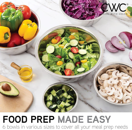 COOK WITH COLOR Stainless Steel Mixing Bowls Set - Nesting Bowls, 6 Pieces, Silver with Non Slip Bottom
