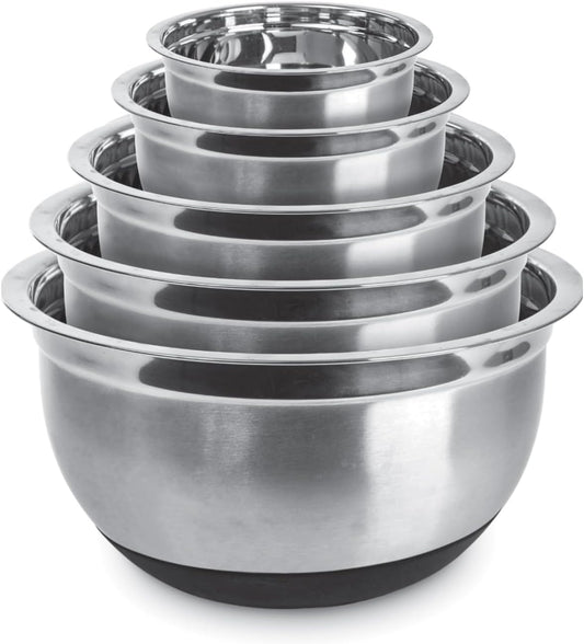 Avador Premium Stainless Steel Mixing Bowls with Lids Non-Slip, Set of 5 Mixing Bowl Set with Silicone Base, Space Saving, Great for Cooking, Baking, Prepping (0.25qt, 1qt, 1.5qt, 3qt, 5qt)
