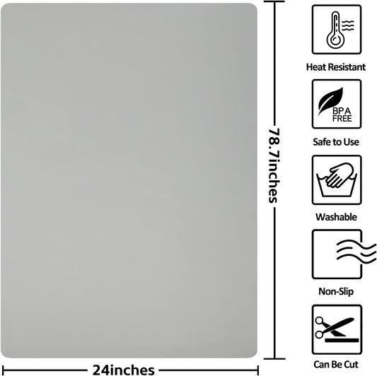 Silicone Mats for Kitchen Counter, Nonslip Silicone Mats for Crafts Countertop Protector Heat Resistant Mat (78.7” x 24” x 0.08”, Grey)