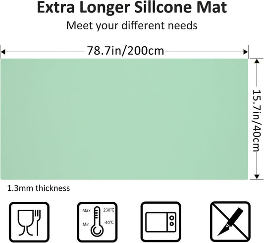 Silicone Mats for Kitchen Counter, Nonslip Silicone Mats for Crafts Countertop Protector Heat Resistant Mat (Light Green, 78.7"L x 15.7"W)