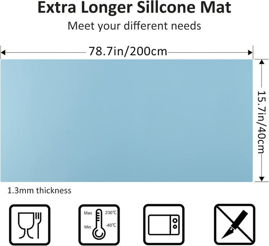 Silicone Mats for Kitchen Counter, Nonslip Silicone Mats for Crafts Countertop Protector Heat Resistant Mat (78.7” x 24” x 0.08”, Light Blue)