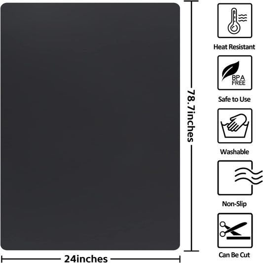Silicone Mats for Kitchen Counter, Nonslip Silicone Mats for Crafts Countertop Protector Heat Resistant Mat (78.7” x 24” x 0.08”, Black)