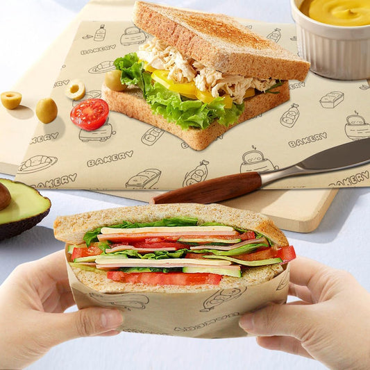 50 Pcs Sandwich Wrapping Paper Deli Wraps, Waterproof Oil-proof Picnic Basket Liners Precut Non-Stick Parchment Paper Baking Sheets for Baking, Cooking, Grilling, Air Fryer and Steaming
