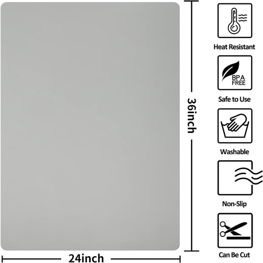 Silicone Mat Heat Resistant Mats for Countertop, Multipurpose Large Silicone Mats for Crafts Kitchen Workbench Size 36x24 inches Thick 2mm,Rolled Package,Grey