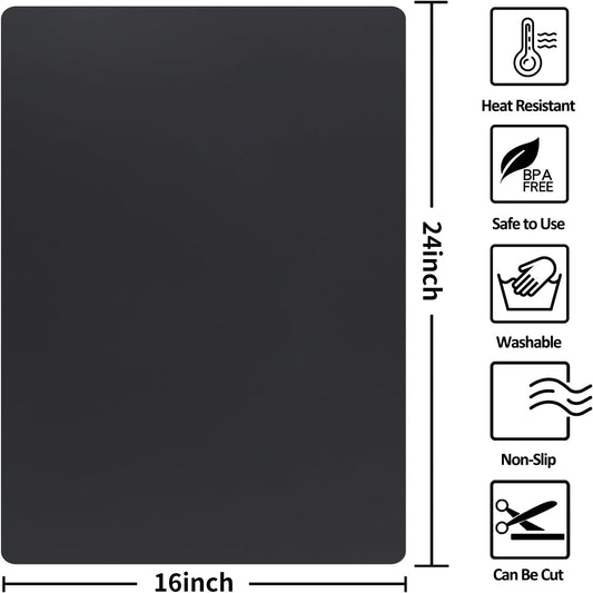 Silicone Mats for Kitchen Counter Thicker Extra Large Heat Resistant Mats Countertop Protector Liners for Bottom of Oven Air Fryer Coffee Maker, 24" x 16" x 2 mm, Black