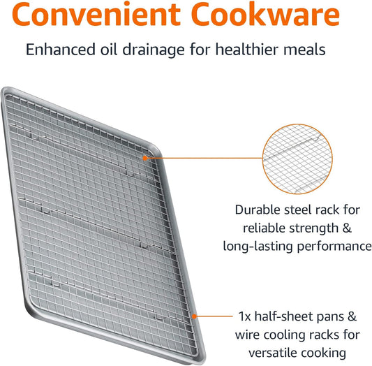 Amazon Basics Ceramic Nonstick Baking Sheet & Cooling Rack Set, Non-Toxic, Half Sheet Size - 1 Pack, Gray