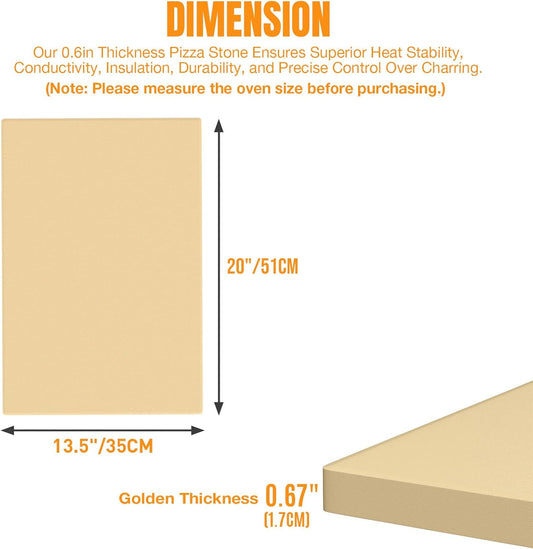 Large Pizza Stone 20" x 13.5" for Grill Rectangular Thick (0.67”) Baking Pizza Stone for Oven Heavy Duty Cordierite, Ideal for Baking Pizzas - Includes Scaper