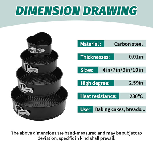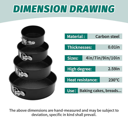 SHIKORI Cake Pan Set for Baking, Non-Stick Springform Pans Set of 4 (4, 7, 9 10 inch), Round Cheesecake Pan, Leak-Proof Cake Pans with Removable Bottom-Black 4 Pcs